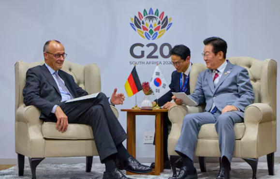 22日,默茨与李在明在南非G20峰会期间会晤 韩媒